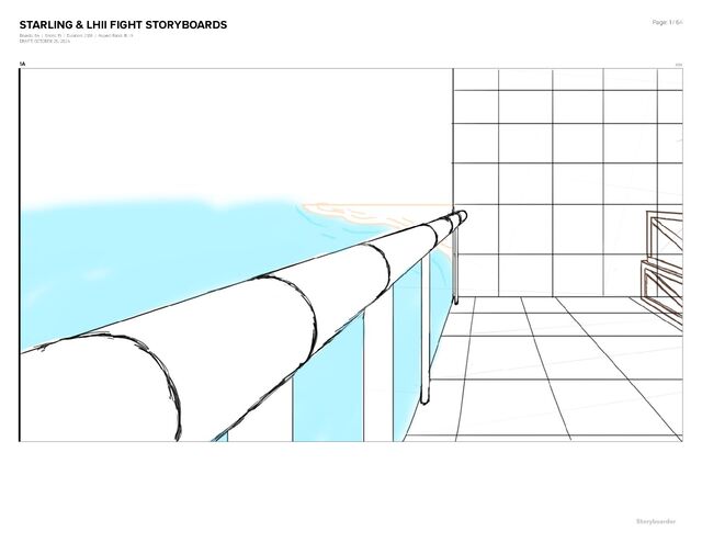 | Duration: 2:08 | Aspect Ratio: 16 : 9 DRAFT: OCTOBER 25, 2024 Page: 54 / 64 13G 1:46 Unbeknownst to them, they stumble towards the railing overlooking the waterway--