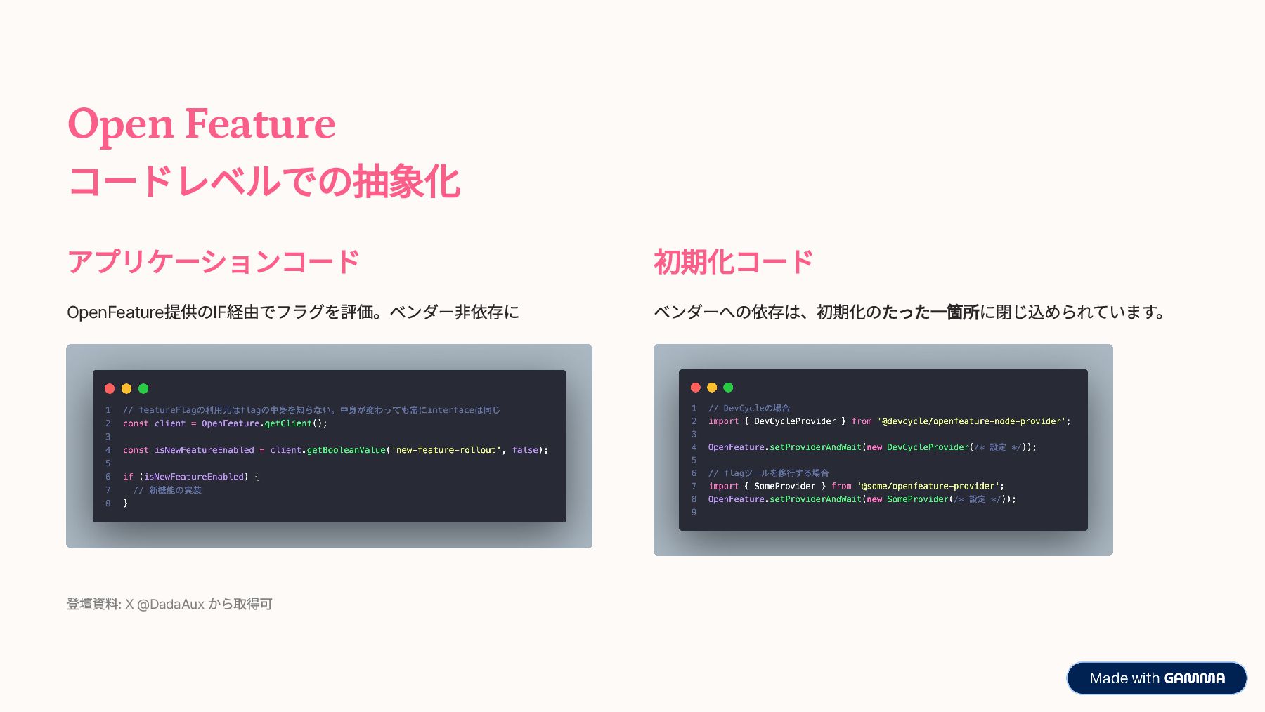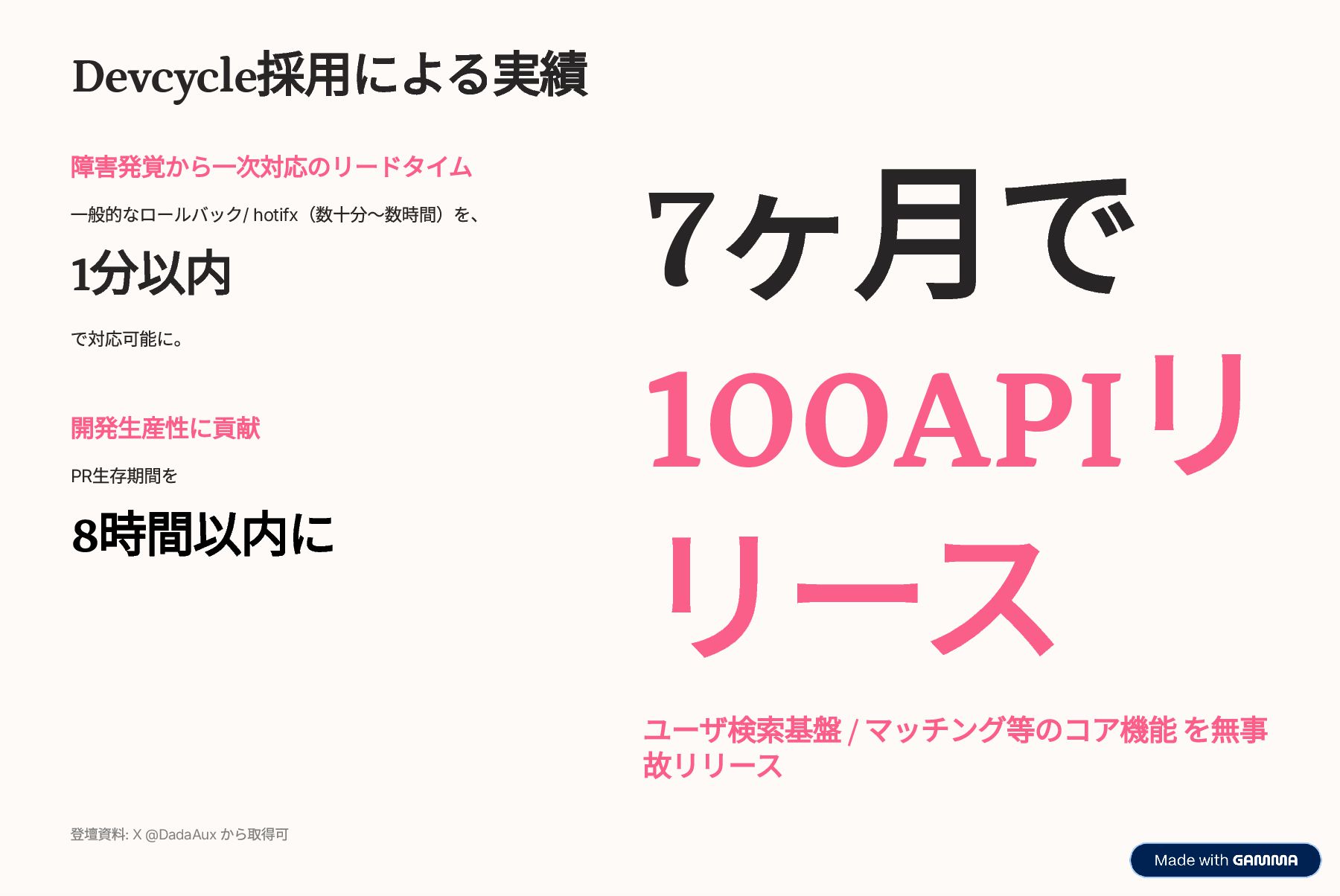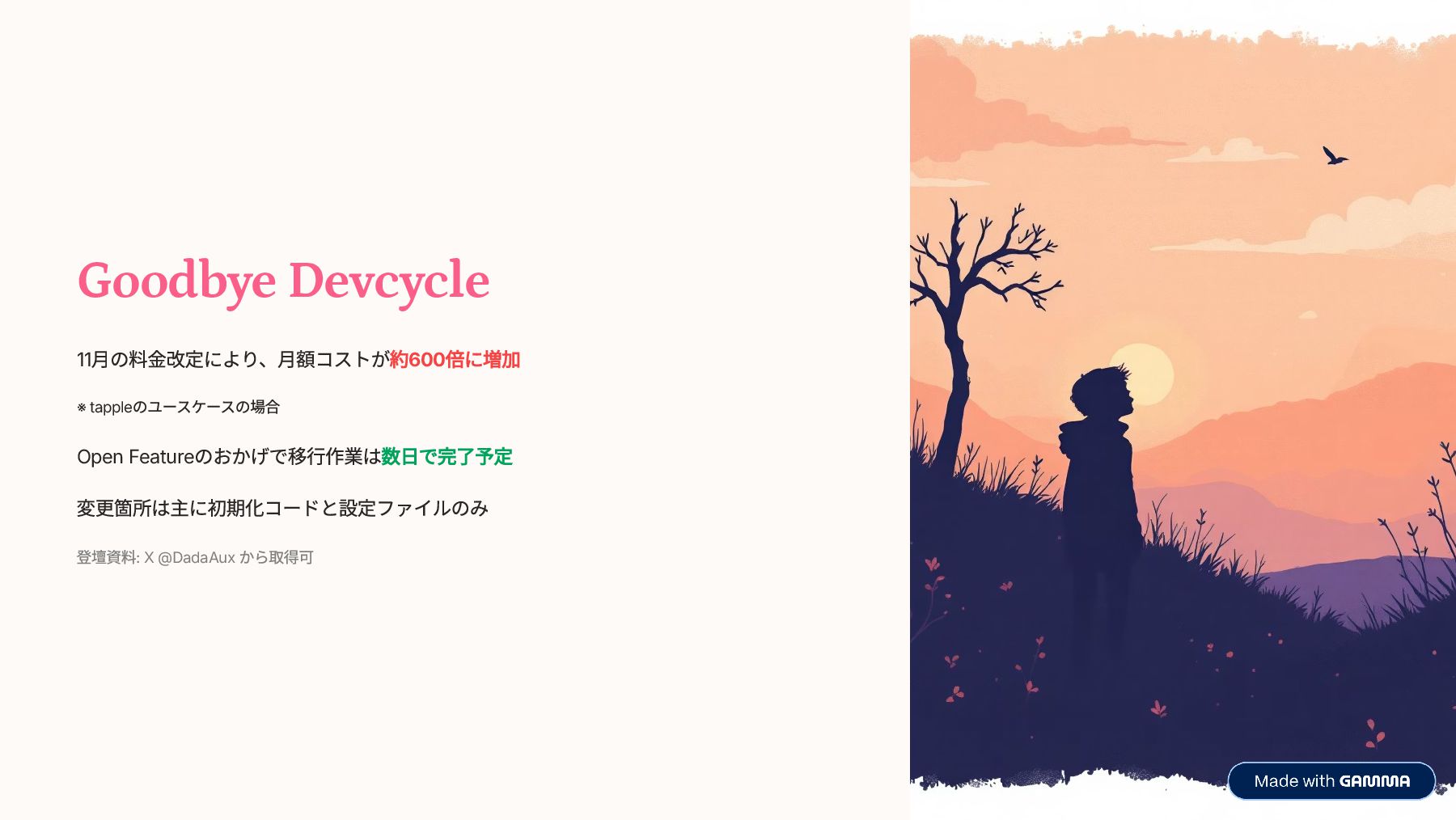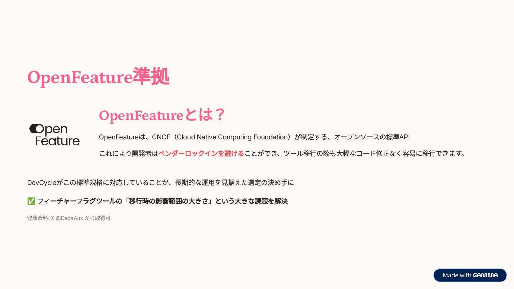 本LTでは、マッチングアプリ「tapple」の大規模なマイクロサービス移行において採用した、DevCycleの強力なリリース制御と、CNCF準拠のOpen FeatureによるTypeScript SDKを用いたコードの抽象化を組み合わせた機能解放戦略、そしてそれによって享受できた巨大なメリットの事例を紹介します。