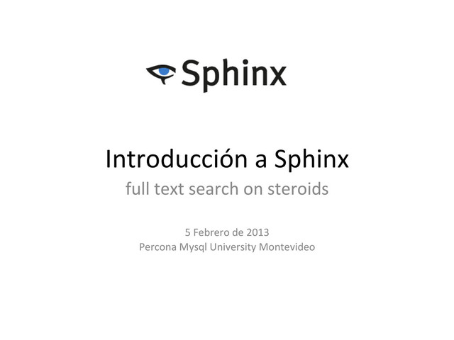 MySQL • no actualiza los índices solo • sphinx solo devuelve ids • permite ordenar por relevancia • exact search / boolean search / … • API en varios lenguajes • implementa protocolo MySQL