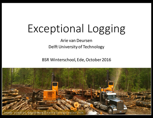 Presentation on exception handling, errors in exception handling, logging exceptions, and reproducing exceptions, held at the "Big Software On the Run" Winterschool in Ede, The Netherlands, October 2016.