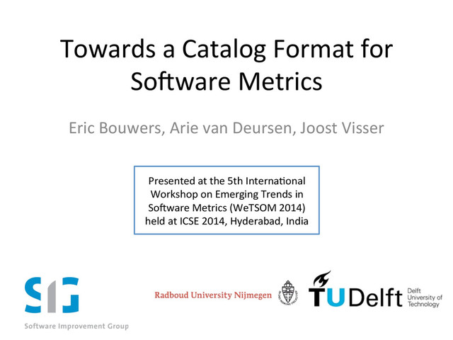 Bouwers, Arie van Deursen, Joost Visser Presented at the 5th InternaDonal Workshop on Emerging Trends in So1ware Metrics (WeTSOM 2014) held at ICSE 2014, Hyderabad, India