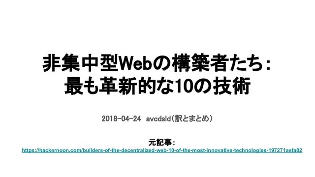 最近注目されているブロックチェーン・非中央型Web (Decentralized Web) の技術を紹介した下記の記事の要約です。