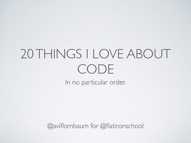 20 THINGS I LOVE ABOUT CODE In no particular order.