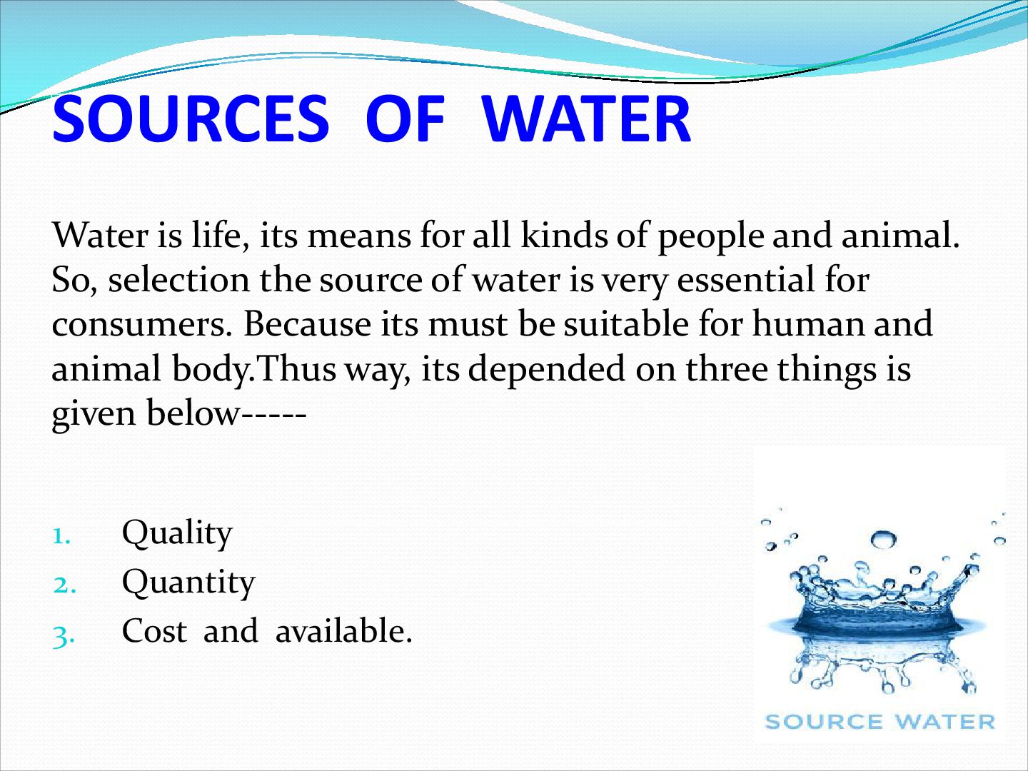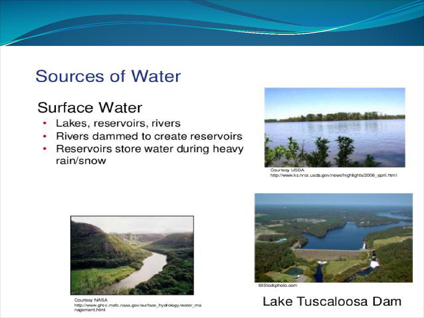 Irrigation water can come from groundwater (extracted from springs or by using wells), from surface water (withdrawn from rivers, lakes or reservoirs) or from non-conventional sources like treated wastewater, desalinated water, drainage water, or fog collection. Irrigation can be supplementary to rainfall, which is common in many parts of the world as rainfed agriculture, or it can be full irrigation, where crops rarely rely on any contribution from rainfall. Full irrigation is less common and only occurs in arid landscapes with very low rainfall or when crops are grown in semi-arid areas outside of rainy seasons.