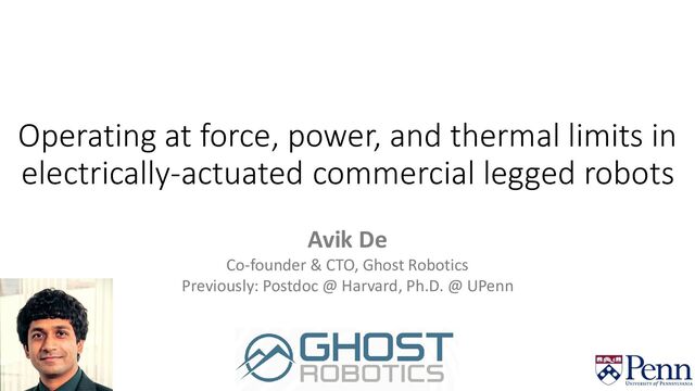 hopper” with stance and aerial phases • Fully instrumented with a single actuator • Showing braking trials here 𝑚 𝐽𝑚 𝜏𝑚 𝑧 Flight Stance Lower stopping time when power-constrained [1] A. De, A. Stewart-Height, and D. E. Koditschek, “Task-Based Control and Design of a BLDC Actuator for Robotics,” IEEE Robotics and Automation Letters, vol. 4, no. 3, pp. 2393--2400, 2019.