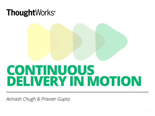 CONTINUOUS DELIVERY IN MOTION Avinash Chugh & Praveer Gupta 1