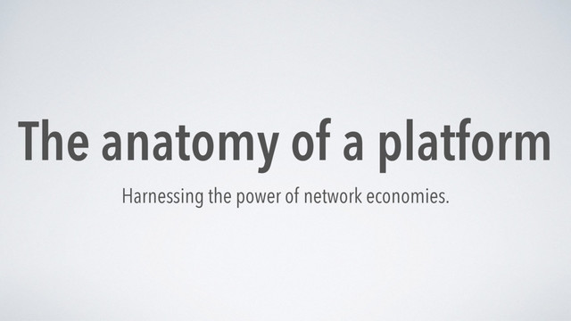 the business. User acquisition Product Design Monetization “Build for networking effects before you optimize the conversion funnel.” “Our product has little value unless more users engage with it.” “Think about which player is creating value, and who needs to be charged for that.”