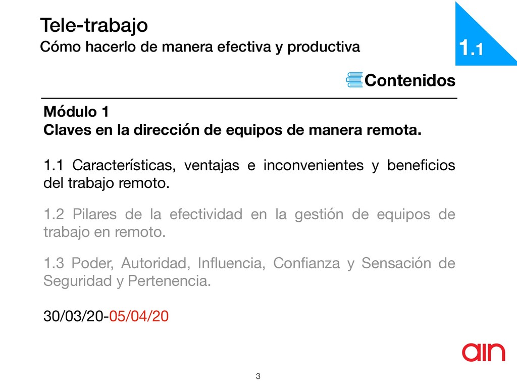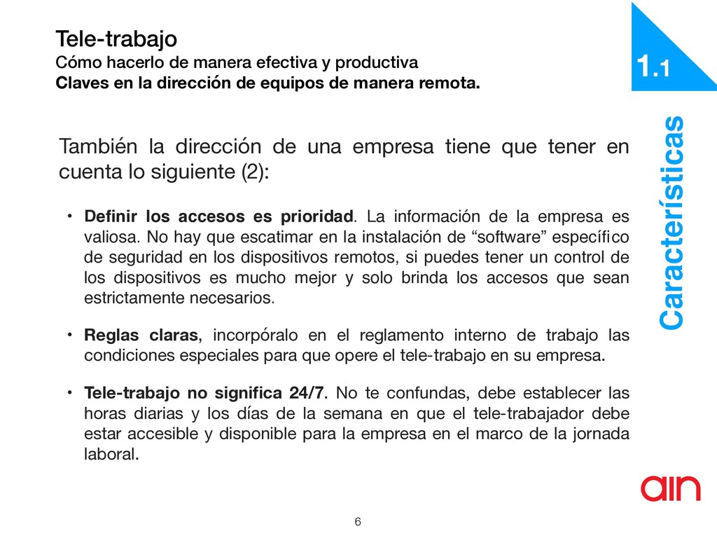 la dirección de equipos de manera remota. 7 Características También la dirección de una empresa tiene que tener en cuenta lo siguiente (y 3): • Delimita las tareas y funciones, pero sobre todo establece metas, esto le permitirá generar una métricas con las cuales evaluará los procedimientos del empleado • No por el hecho de que estos empleados no están presencialmente en la empresa quiere decir que puedes incumplir con las obligaciones legales a las cuales ellos tienen derecho, como un contrato, asistencia médica, riegos profesionales, etc. 1.1