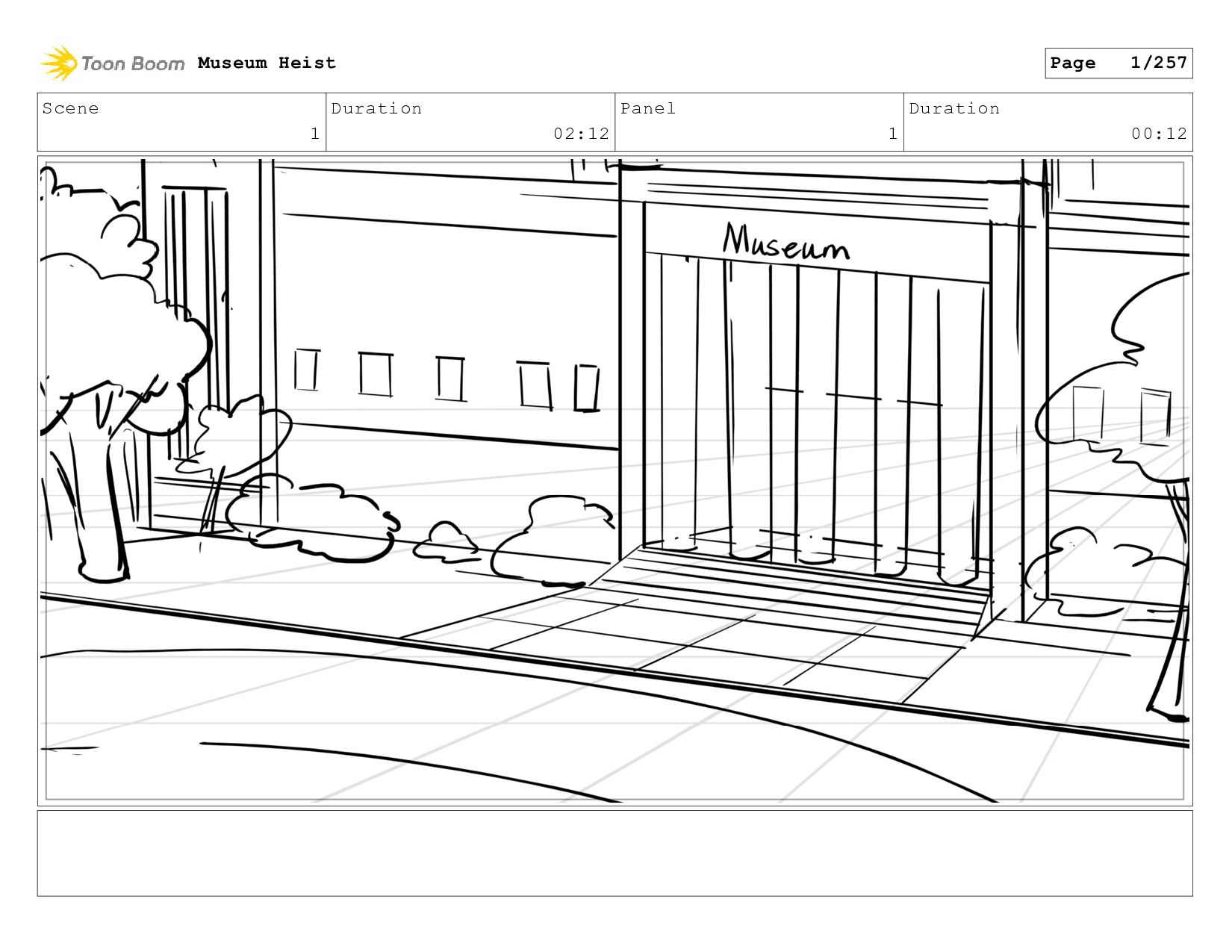 Scene 1 Duration 02:12 Panel 1 Duration 00:12 Museum Heist