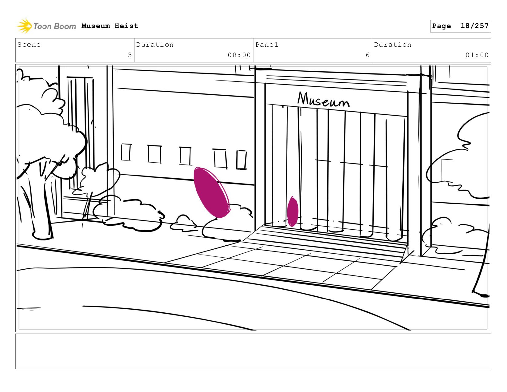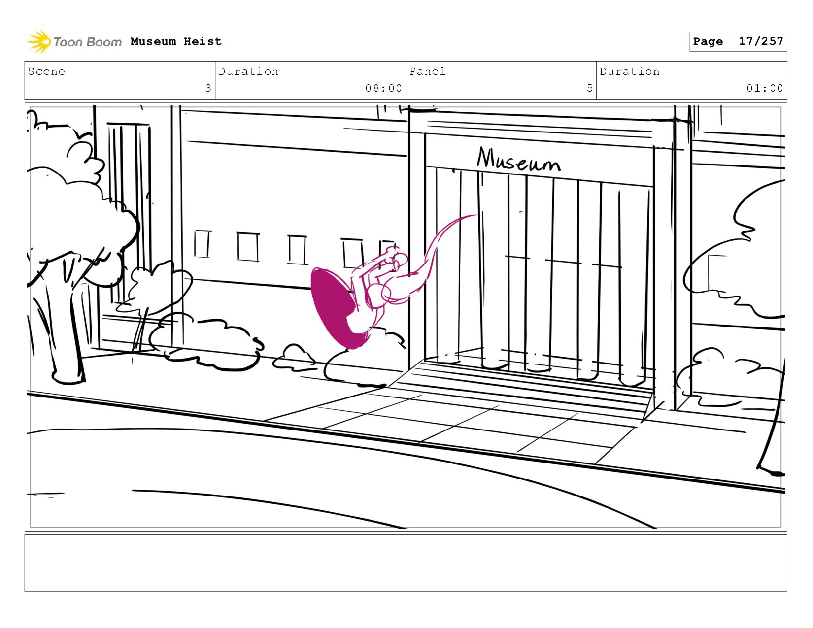 Scene 3 Duration 08:00 Panel 8 Duration 01:00 Museum Heist