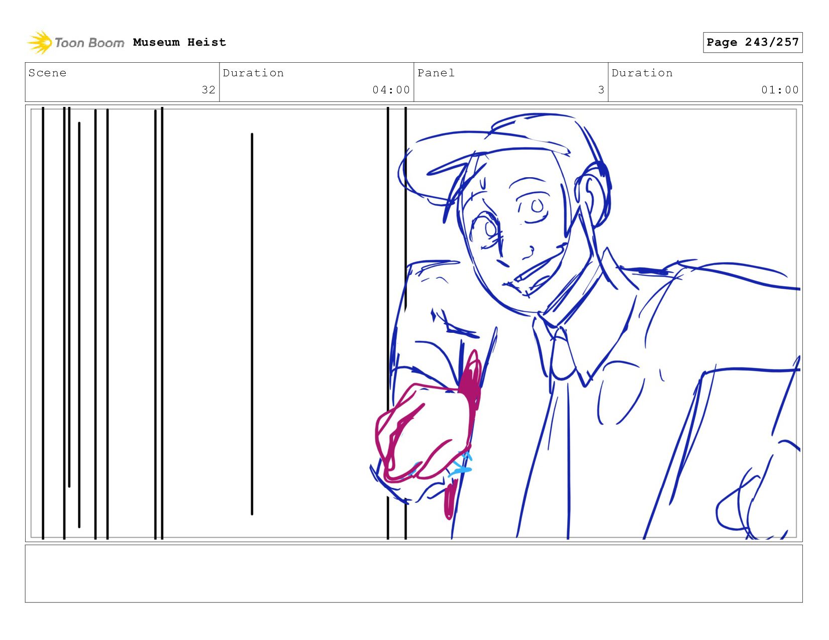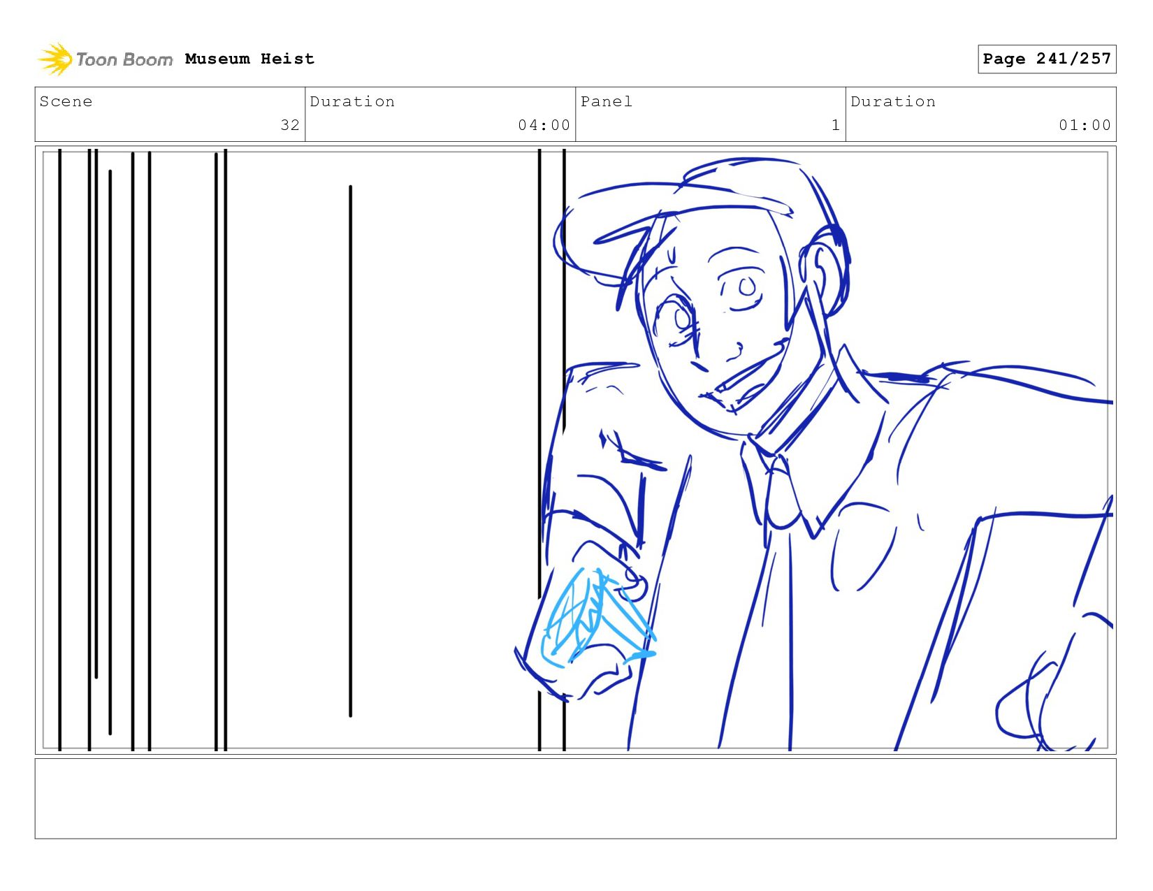 Scene 32 Duration 04:00 Panel 1 Duration 01:00 Museum Heist