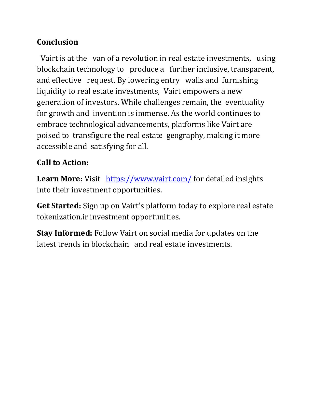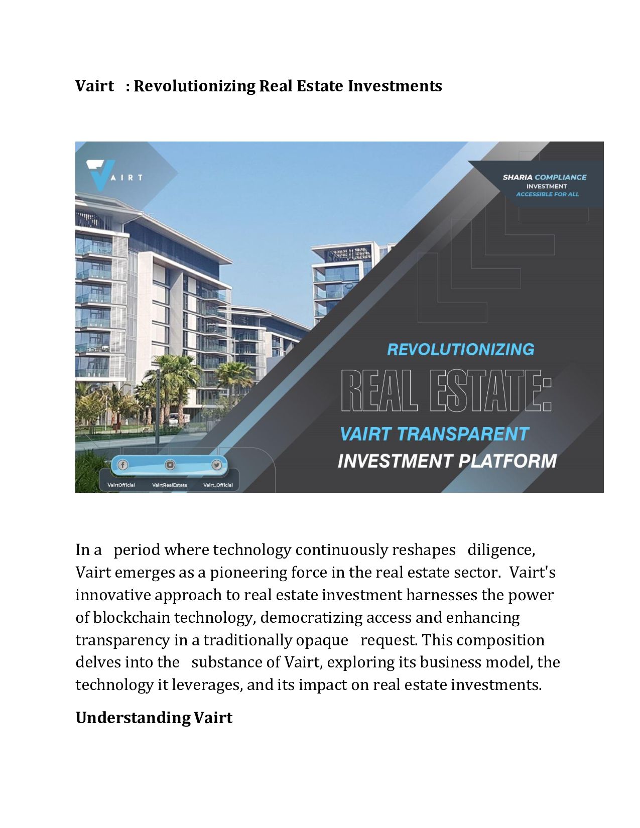 Vairt is a marketplace where you can easily access the high returning properties, you dont have to buy whole property but you can invest in those properties by buying few share. Your sahre will be in liquid form in Vairt vallet & you can easily sell those shares when ever you want and withdraw you return on investment. Simple is that! This how Vairt make real estate investment easy for you.