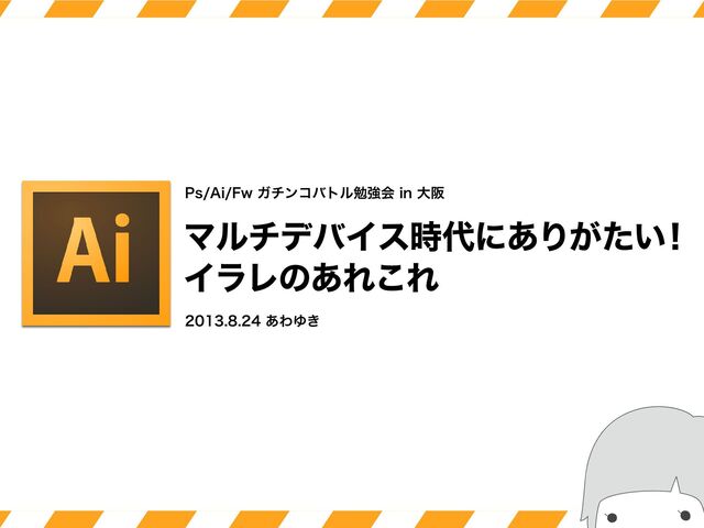 2013年8月24日開催「Ps/Ai/Fw ガチンコバトル勉強会 in 大阪」での発表スライドです。 Web デザインにおける Adobe Illustrator の有用性について簡単にお話ししました。