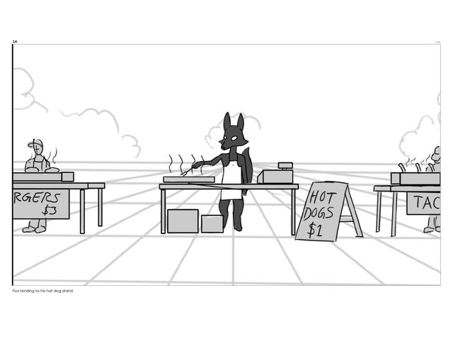 1A 0:00 Fox tending to his hot dog stand
