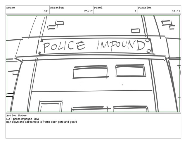 Scene 007 Duration 08:00 Panel 1 Duration 01:00 Action Notes