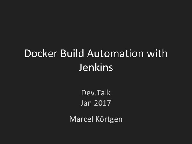 Docker Build Automation with Jenkins Dev.Talk Jan 2017 Marcel Körtgen