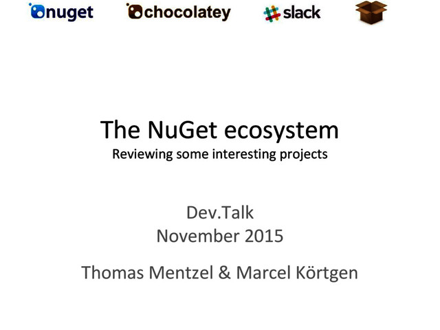 The NuGet ecosystem Reviewing some interesting projects Dev.Talk November 2015
