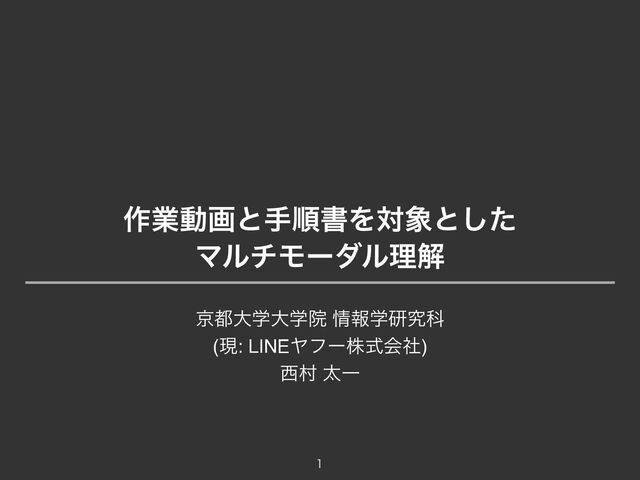 ใֶݚڀՊ म࢜՝ఔमྃ (ݚڀࣨ) 2020 ~ 2023: ಉେֶ ത࢜՝ఔमྃ, ത࢜ (ใֶ) 2023 ~ ݱࡏ: LINEϠϑʔגࣜձࣾ Image and video AI νʔϜ ྉཧಈը͔ΒͷϨγϐੜ ACMMM21, MTAP22, ACM TOMM ࣮ݧಈըͷVision&Languageσʔληοτ ICCVW21, JNLP22 (༏ल) Add the butter into a pan Crack the egg and stir … खॱ.1 Invert 4 times to mix खॱ. 2 Add 10μl of Alkaline Protease Solution