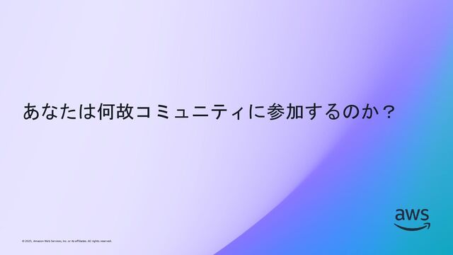 rights reserved. © 2025, Amazon Web Services, Inc. or its affiliates. All rights reserved. あなたは何故コミュニティに参加するのか?