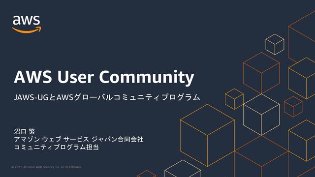 2021, Amazon Web Services, Inc. or its Affiliates. 6,856 8,700 9,293 12,424 15,631 18,495 26,124 21,833 186 280 268 255 315 208 376 397 0 50 100 150 200 250 300 350 400 450 0 5,000 10,000 15,000 20,000 25,000 30,000 2015 2016 2017 2018 2019 2020 2021 2022 JAWS-UG 勉強会と参加申込者数 参加者数 開催回数