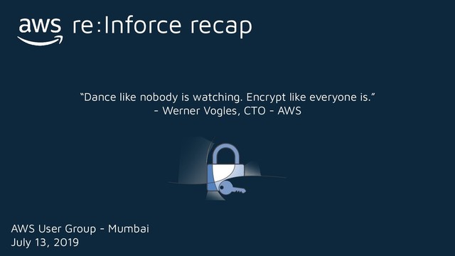 - around 8000 security professionals attended the event - next re:Inforce will be in Houston, Texas in 2020 What’s AWS re:Inforce? “95% of internet web traffic is HTTPS or encrypted but about 90% of Internet of Things (IoT) traffic is HTTP or unencrypted.” - Steve Schmidt, CISO - AWS