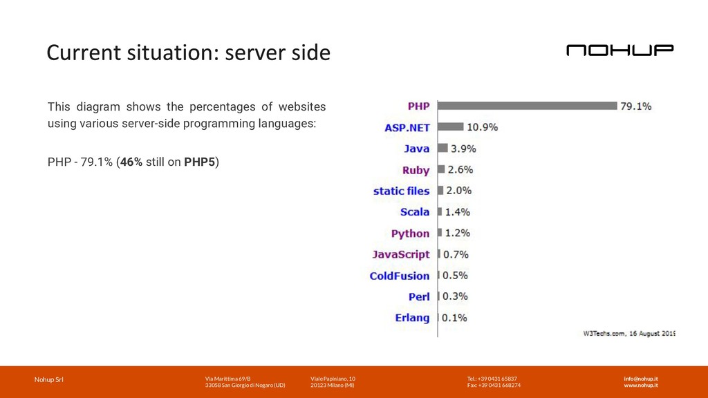 69/B 33058 San Giorgio di Nogaro (UD) [email protected] www.nohup.it Tel.: +39 0431 65837 Fax: +39 0431 668274 This diagram shows the percentages of websites using various server-side programming languages: PHP - 79.1% (46% still on PHP5)