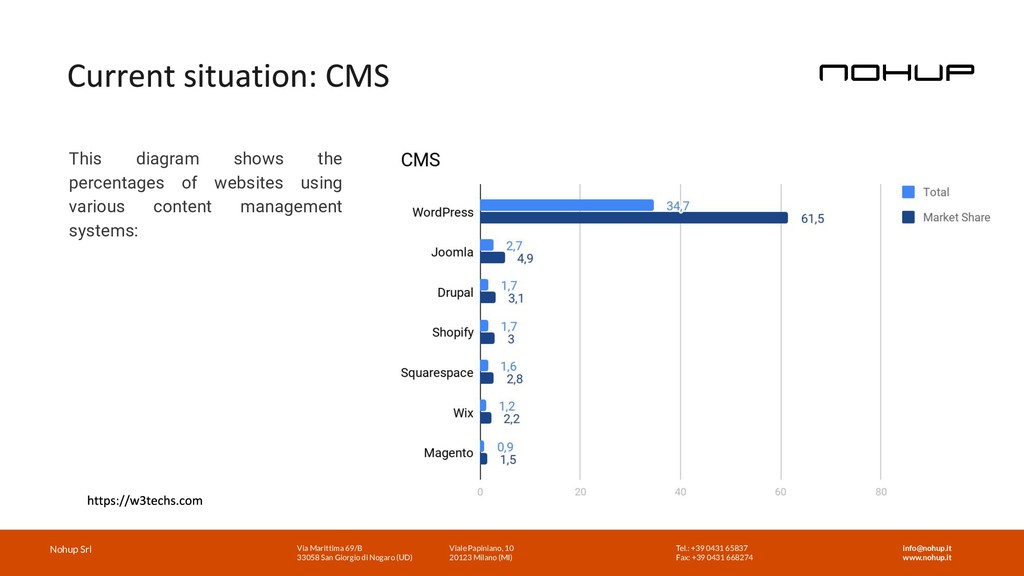 69/B 33058 San Giorgio di Nogaro (UD) [email protected] www.nohup.it Tel.: +39 0431 65837 Fax: +39 0431 668274 This diagram shows the percentages of websites using various content management systems: