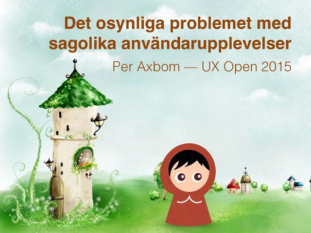 Vad händer när vi gör våra tjänster så enkla att användarna slutar tänka? Var ligger vårt ansvar? Läs hela sagan här: http://axbom.se/sagolik-ux - bilder från UX Open 2015. Föreläsningen blev oerhört populär och fick gå i repris året efter – och översattes sedan till engelska och presenterade på UXLx i Lissabon.
