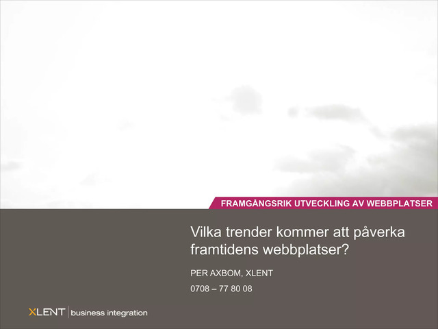 Bilder till en entimmes presentation i samband med en konferens om användbarhet och webbtrender där jag var moderator. Konferensen hette Framgångsrik utveckling av webbplatser. Presentationen skapades i december 2006.