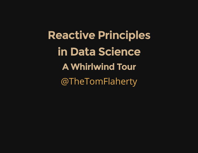 A whirlwind tour of Reactive Data Science principles. We begin with business transformation, REST and NoSQL databases. We then peak into the future with Grid Gain and Apache Spark and conclude with influence of the Reactive Manifesto.