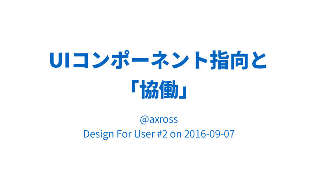 2016-09-07に行われた「Design For User #2 - コンポーネント指向から考えるUIと設計」でお話しました。 Mediumに記事としても上げています。そちらもあわせてどうぞ。 https://medium.com/@axross/2c3dbca01ab9