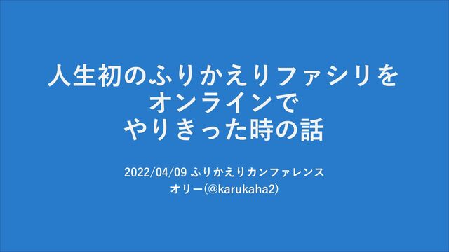 ⼈⽣初のふりかえりファシリを オンラインで やりきった時の話 2022/04/09 ふりかえりカンファレンス オリー(@karukaha2)