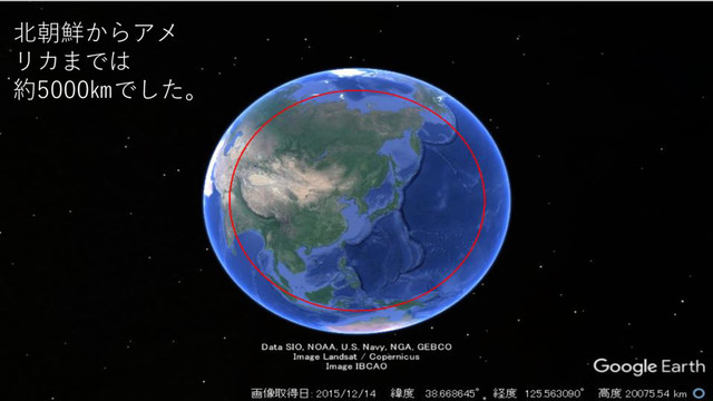 北朝鮮からアメ リカまでは 約5000㎞でした。