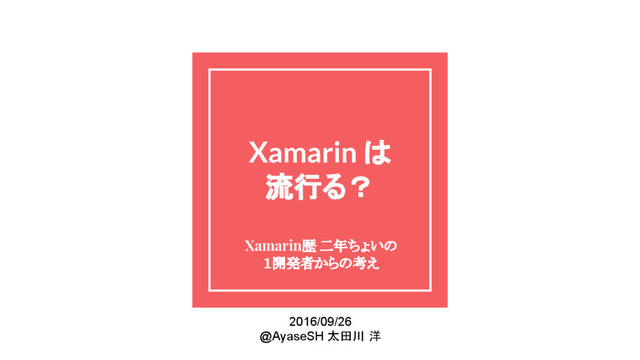Xamarin は 流行る? Xamarin歴 二年ちょいの 1開発者からの考え 2016/09/26 @AyaseSH 太田川 洋