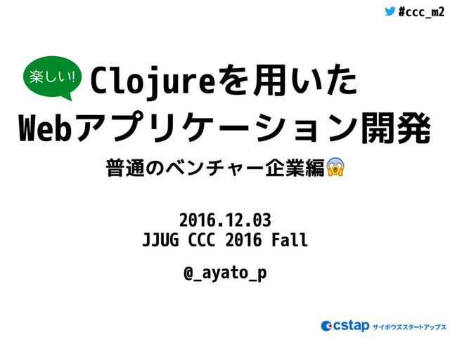 #ccc_m2 Clojureを用いた Webアプリケーション開発 普通のベンチャー企業編 2016.12.03 JJUG CCC 2016 Fall @_ayato_p