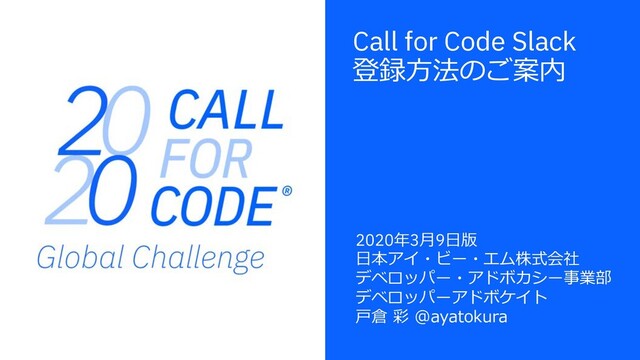 Call for Code Global Challenge 2020に参加する方へ