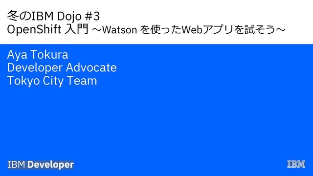 ■冬のIBM Dojo #3 OpenShift 入門 ~Watson を使ったWebアプリを試そう~ https://ibm-developer.connpass.com/event/159764/ 本イベントのプレゼンおよびワークショップ資料です。 ・IBM Cloudライトアカウント作成およびログインURL https://ibm.biz/dojo20200129