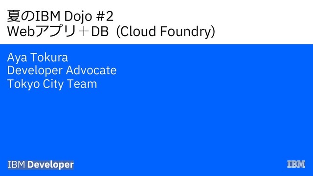 夏のIBM Dojo #2 Webアプリ+DB on Cloud Foundry セッション資料 [目次] 1. Cloud Foundryとは 2. IBM Cloud Foundryについて 3. IBM Cloud Foundryの始め方 4. IBM Cloud Foundryコードチャレンジ