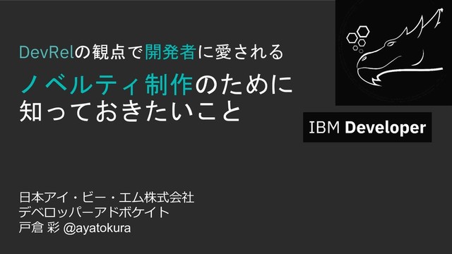 【DevRelの観点で開発者に愛されるノベルティ制作&分析を楽しもう!】 2019年1月17日(木)に開催された「ノベルティカンファレンス2019」にて発表させていただいたセッションの公開資料版です。 https://connpass.com/event/110814/