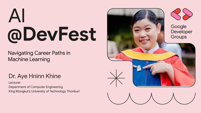Songkla University • Machine Learning Google Developer Expert (Dec 2023-Now) • Machine Learning Researcher with an interest in medical NLP, sentiment analysis, social media analysis, and information extraction • 10 years of working experience in Natural Language Processing projects focused on sentiment analysis, social media monitoring, and machine learning applications • Published scientific articles in international peer-reviewed journals and conferences • Current Affiliations - Lecturer (KMUTT, Bangkok, Thailand)/Adjunct Professor (Parami University, Washington D.C, USA) GDG Yangon/Online