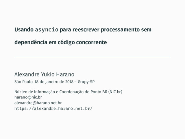 Apresentar mecanismos disponibilizados pelo módulo `asyncio` para cobrir o item "escrever código concorrente de maneira sequencial" na introdução do módulo na documentação da biblioteca padrão do Python (3.4+) através um exemplo prático comparando um código sequencial que obtêm estatísticas de livros do Machado de Assis e cuidados a serem tomados para a sua adaptação para a versão de partes de execução concorrente.