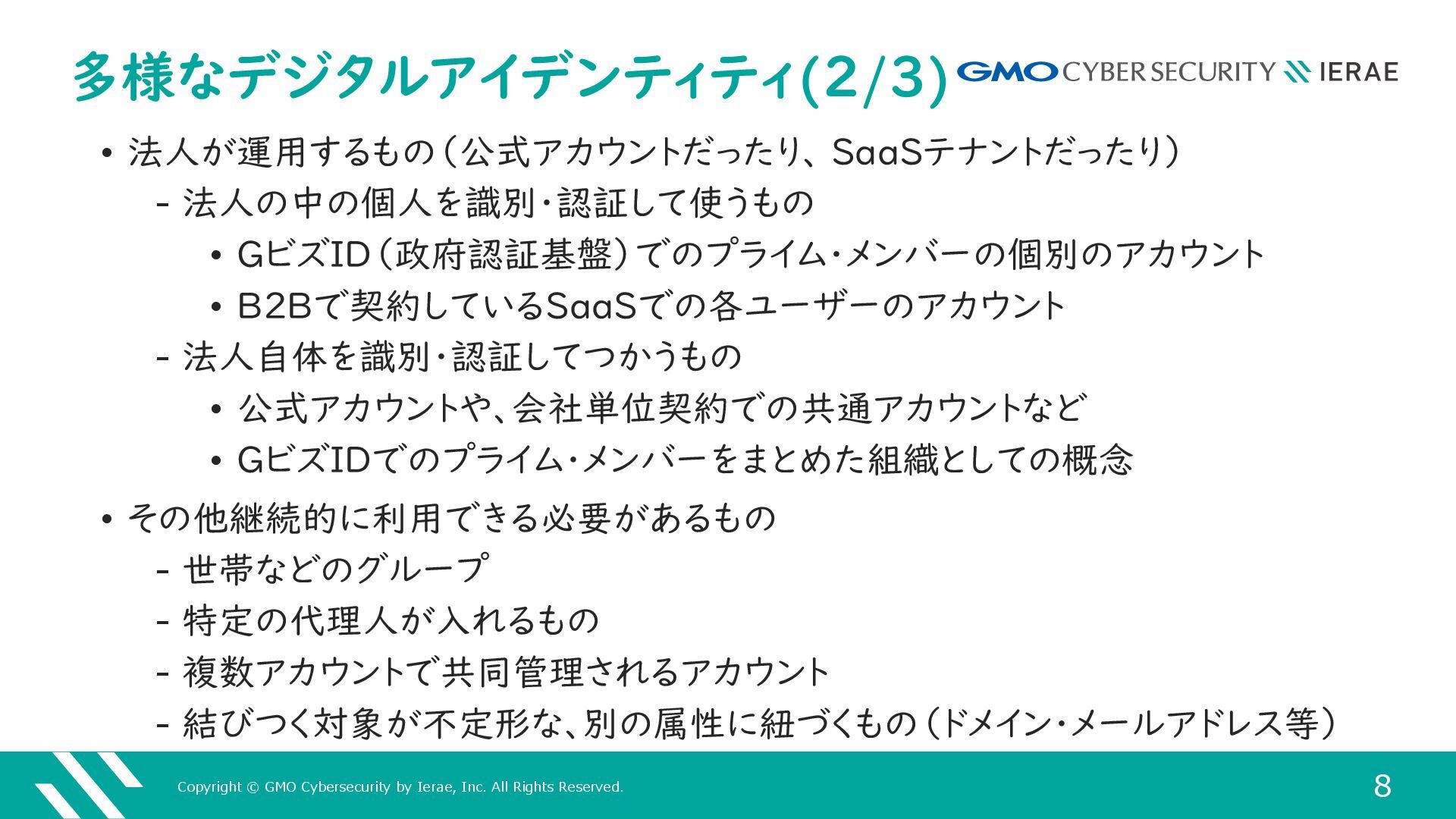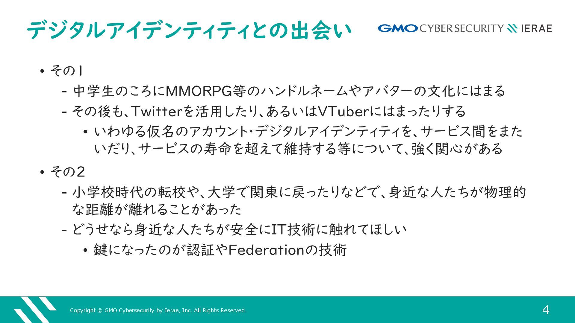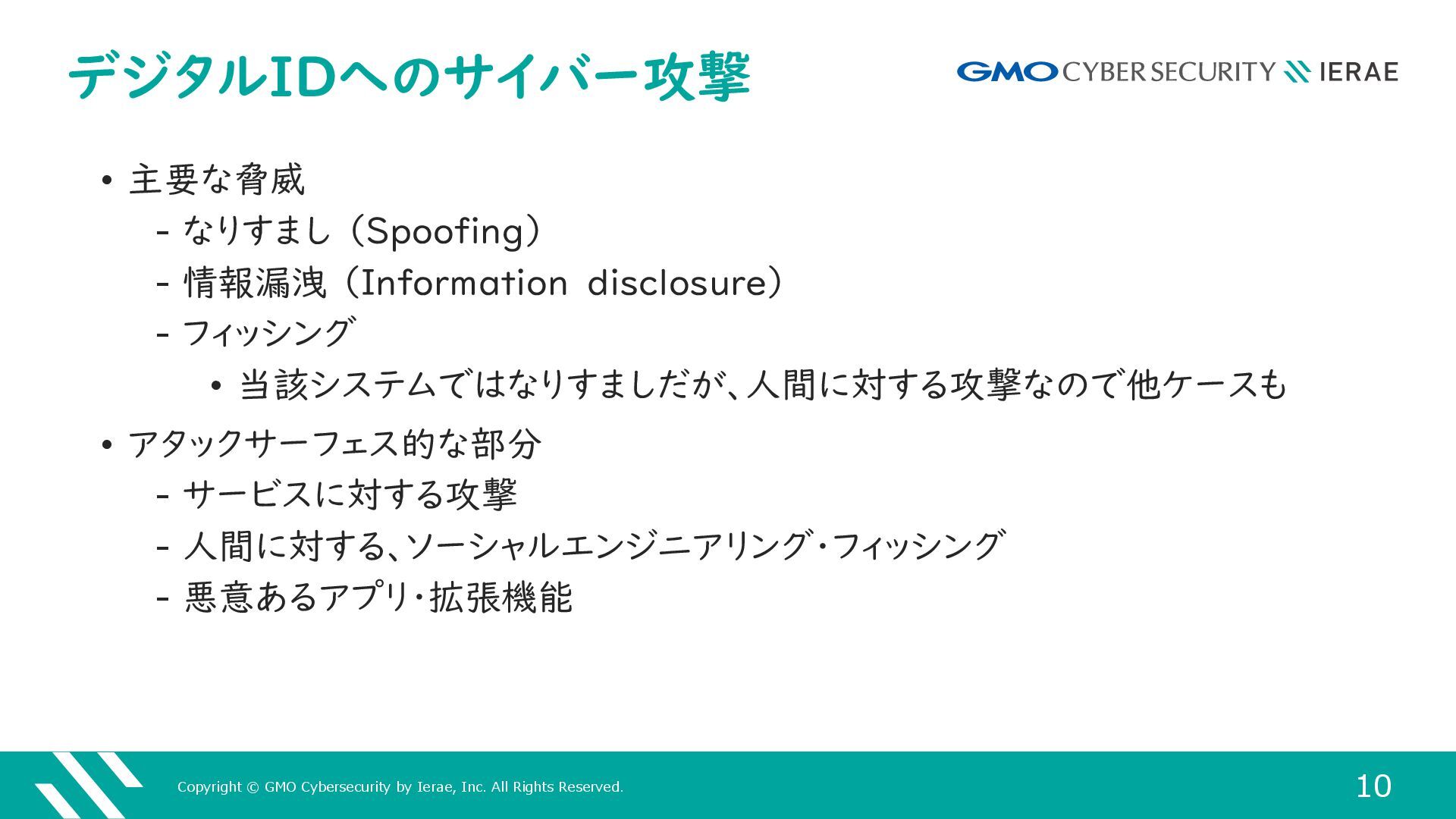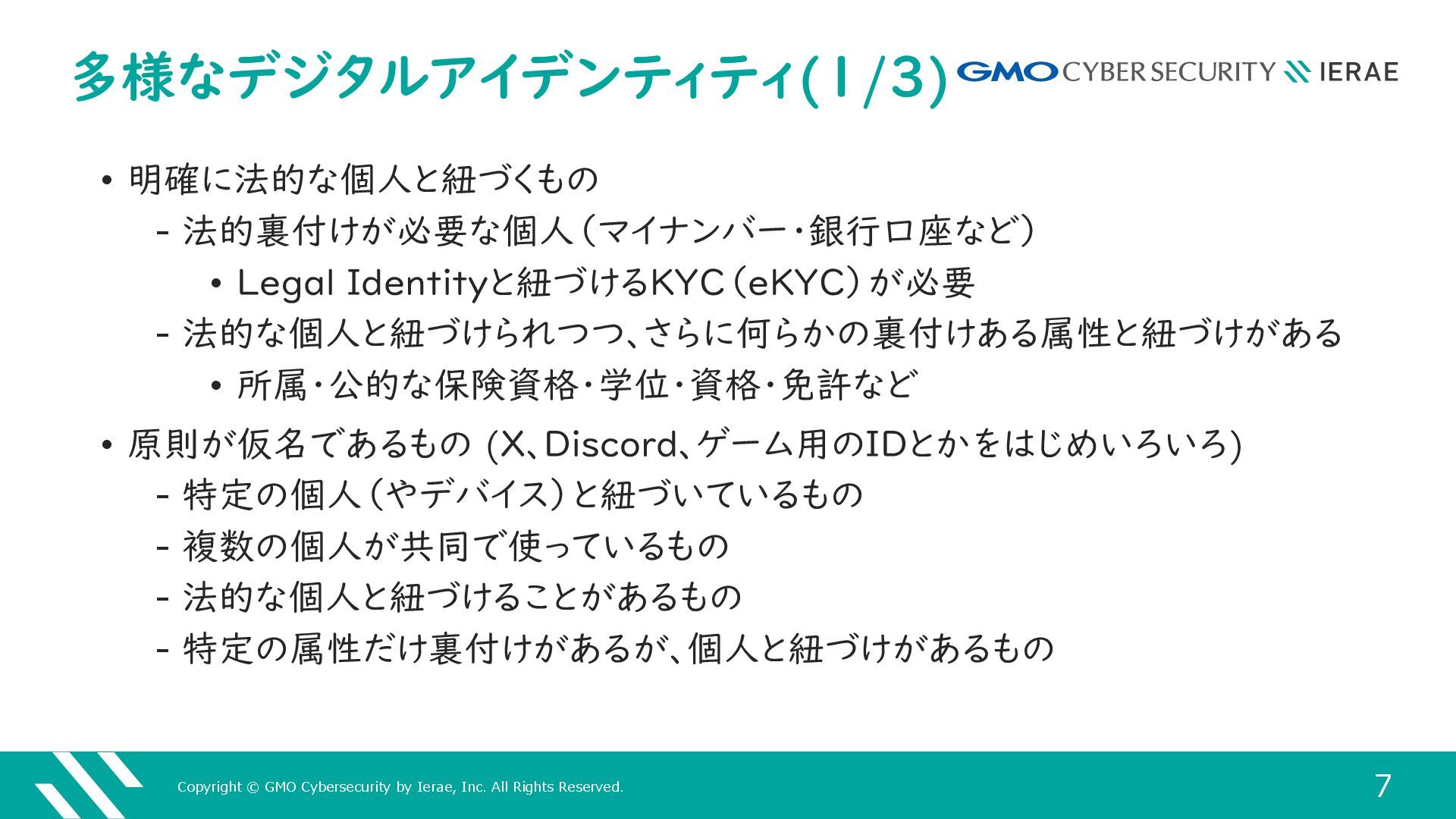 1 GMOサイバーセキュリティ byイエラエ株式会社 サイバーセキュリティ事業本部 高度解析部 高度解析課 名古屋 謙彦 (あよくら @ayokura) 多様なデジタルアイデンティティを 攻撃からどうやって守るのか