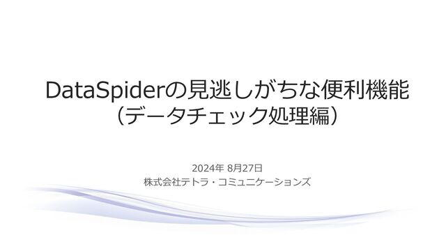 2024年 8月27日 株式会社テトラ・コミュニケーションズ DataSpiderの見逃しがちな便利機能 (データチェック処理編)