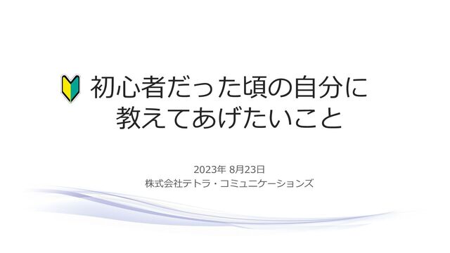 2023年 8月23日 株式会社テトラ・コミュニケーションズ 初心者だった頃の自分に 教えてあげたいこと
