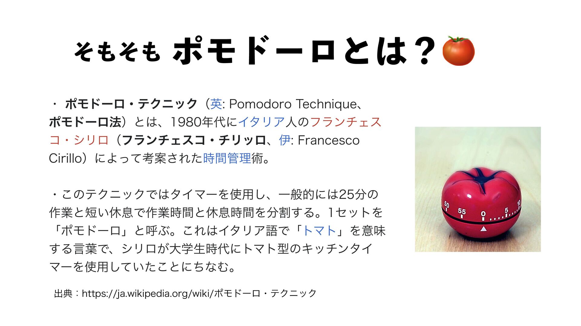 ϙϞυʔϩͱʁ🍅 ɾϙϞυʔϩɾςΫχοΫʢӳ 1PNPEPSP5FDIOJRVFɺ ϙϞυʔϩ๏ʣͱɺʹΠλϦΞਓͷϑϥϯνΣε ίɾγϦϩʢϑϥϯνΣείɾνϦοϩɺҏ 'SBODFTDP $JSJMMPʣʹΑͬͯߟҊ͞Εͨ࣌ؒཧज़ɻ ɾ͜ͷςΫχοΫͰλΠϚʔΛ༻͠ɺҰൠతʹͷ ࡞ۀͱ͍ٳଉͰ࡞ۀ࣌ؒͱٳଉ࣌ؒΛׂ͢ΔɻηοτΛ ʮϙϞυʔϩʯͱݺͿɻ͜ΕΠλϦΞޠͰʮτϚτʯΛҙຯ