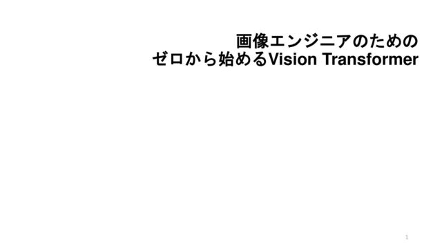 画像エンジニアのための ゼロから始めるVision Transformer 1