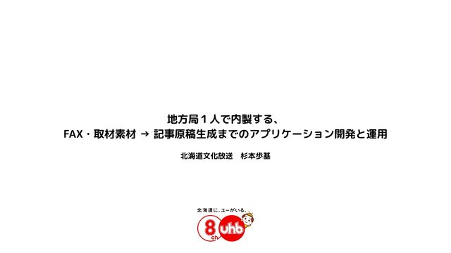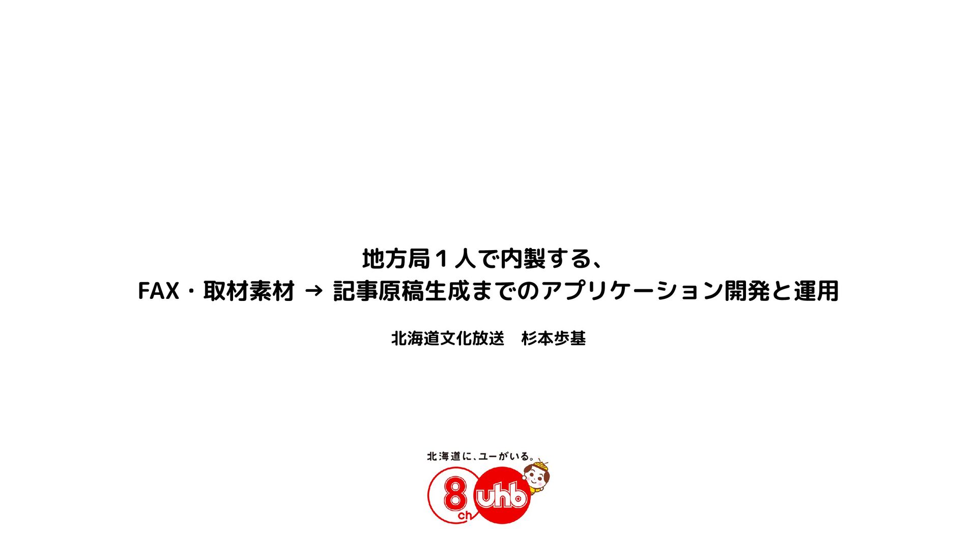 地方局1人で内製する、 FAX・取材素材 → 記事原稿生成までのアプリケーション開発と運用 北海道文化放送 杉本歩基