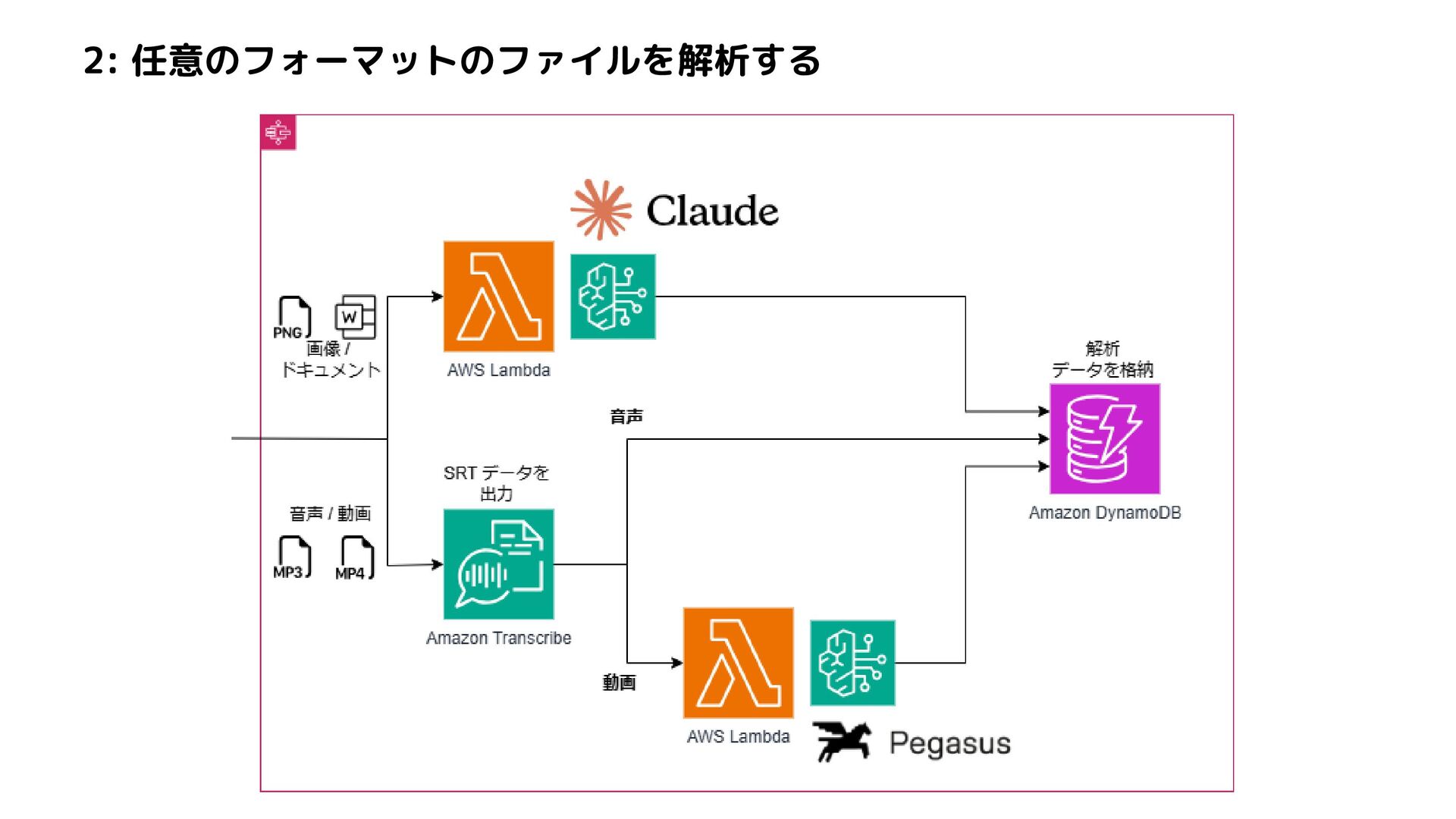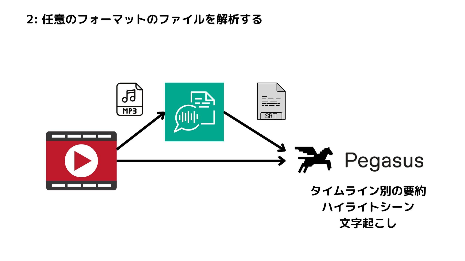 2: 任意のフォーマットのファイルを解析する タイムライン別の要約 ハイライトシーン 文字起こし