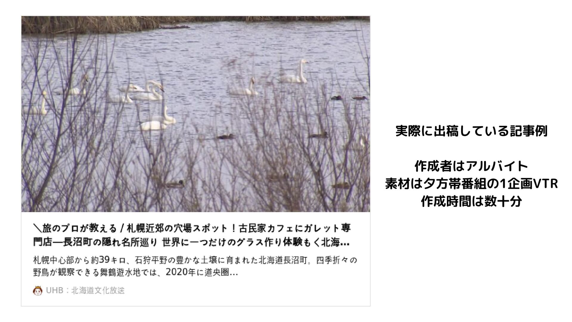実際に出稿している記事例 作成者はアルバイト 素材は夕方帯番組の1企画VTR 作成時間は数十分