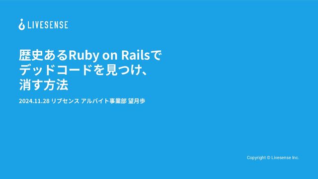 歴史あるRuby on Railsで デッドコードを⾒つけ、 消す⽅法 2024.11.28 リブセンス アルバイト事業部 望⽉歩 Copyright
